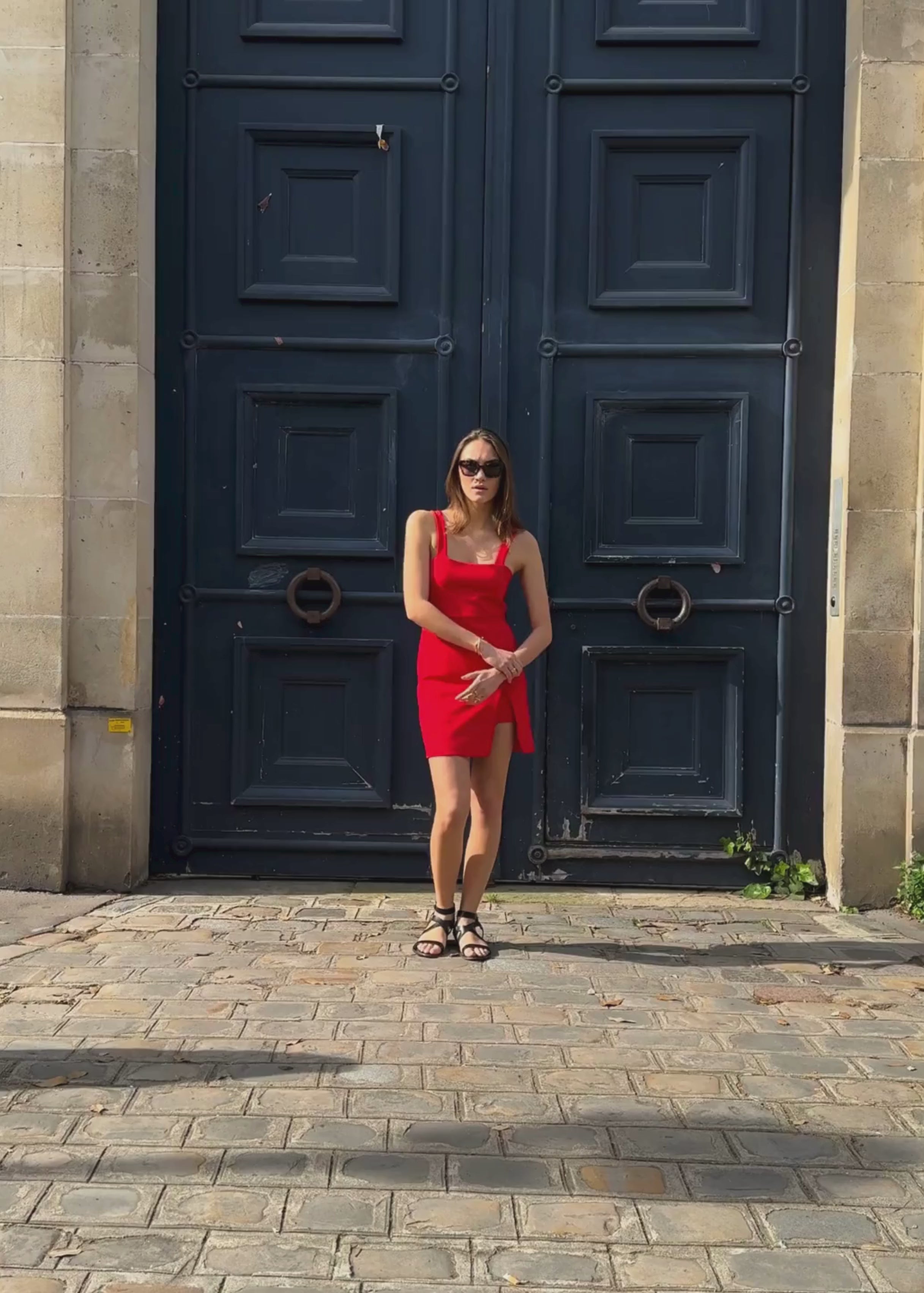 Step into timeless elegance with our square neckline mini dress. Designed to captivate, it combines sophistication with modern allure. Its flattering square neckline highlights your figure, while the subtle skirt underneath the dress adds a touch of mystery and dynamism to every move.